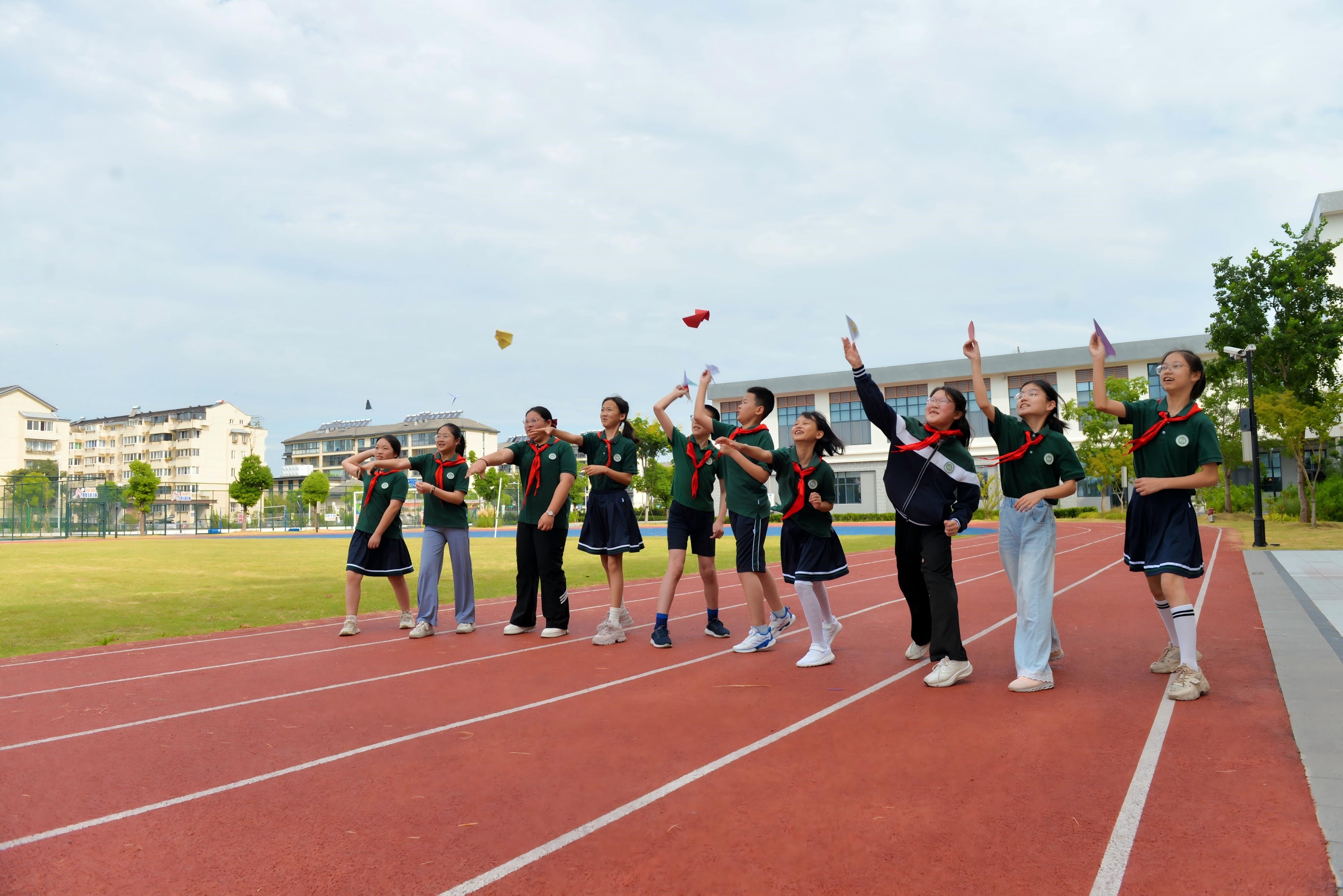 活动最激动人心的环节是全校范围的“梦想启航”仪式。同学们跟随副校长杨明晔在响彻云霄的“心之所向,驭风而行”的誓言中,将提前写满新学期心愿的纸飞机高高举起。霎时间,成千上万架纸飞机承载着希望与梦想在操场上空翱翔,汇聚成一道无比震撼而温情的风景线,将整个典礼的气氛推向最高潮。