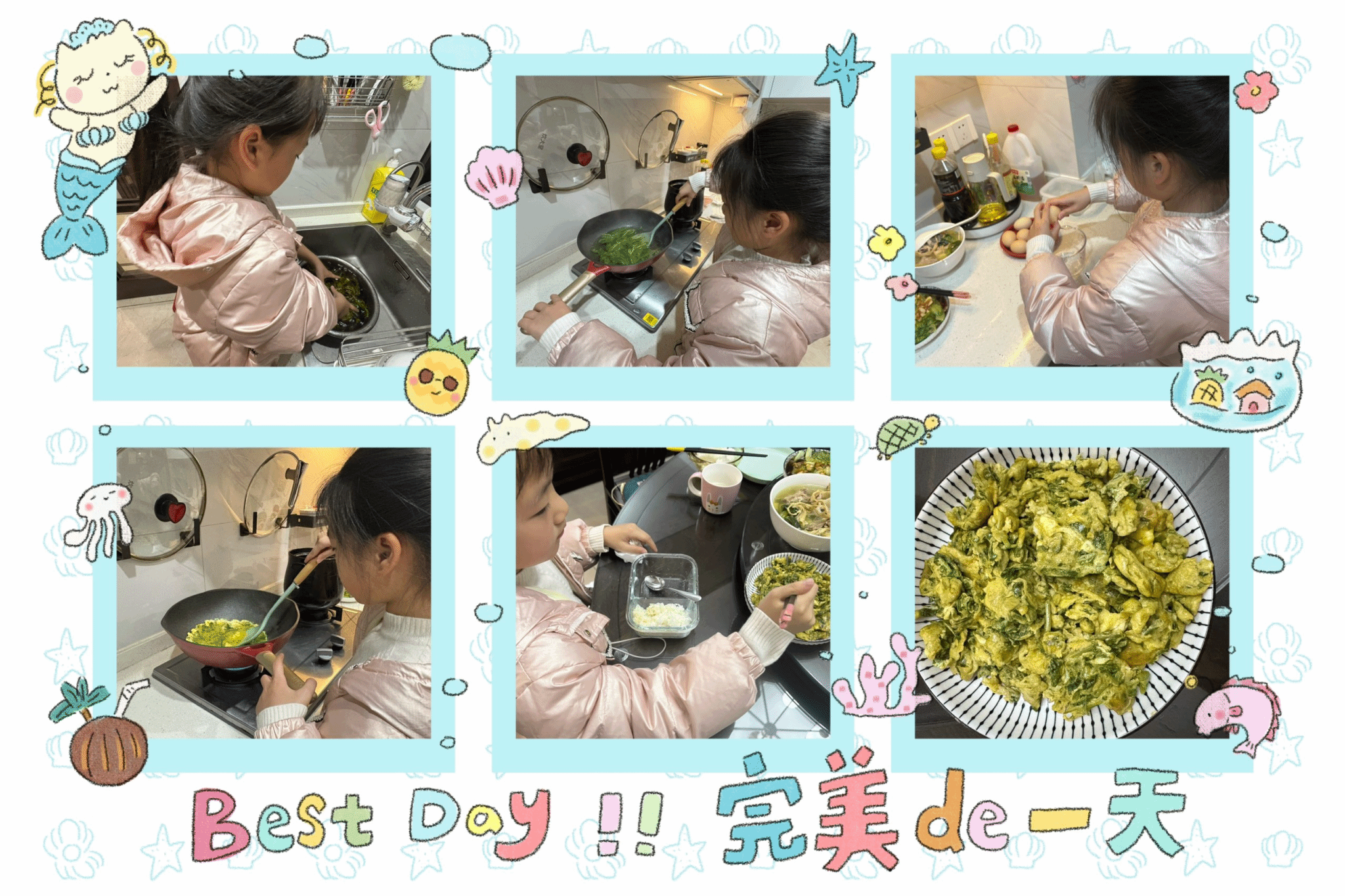 春菜,是春分餐桌上的主角。队员们在家里和爸爸妈妈一起择香椿,选顶芽带红的嫩叶,炒成一盘金黄的香椿炒蛋。油锅“刺啦”一声,香味涌出,夹起一筷送入口中,先是微微的苦,再是醇厚的鲜,像把春天嚼进了心里。春分吃春菜,是咬着春天的劲儿长大。这一口,是节令的馈赠,也是家的温暖。